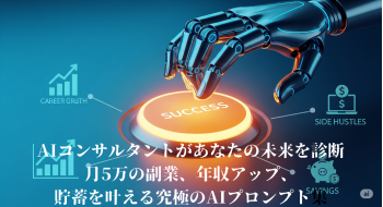 このプロンプト集は、AIをあなたの専属キャリアプランナーとして活用するためのものです。現在のスキルや将来の目標を入力するだけで、AIが最適なキャリアパスや、副業で収入を増やすための具体的なロードマップを提案します。