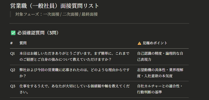 送信するだけで構造化された面接質問リストが完成