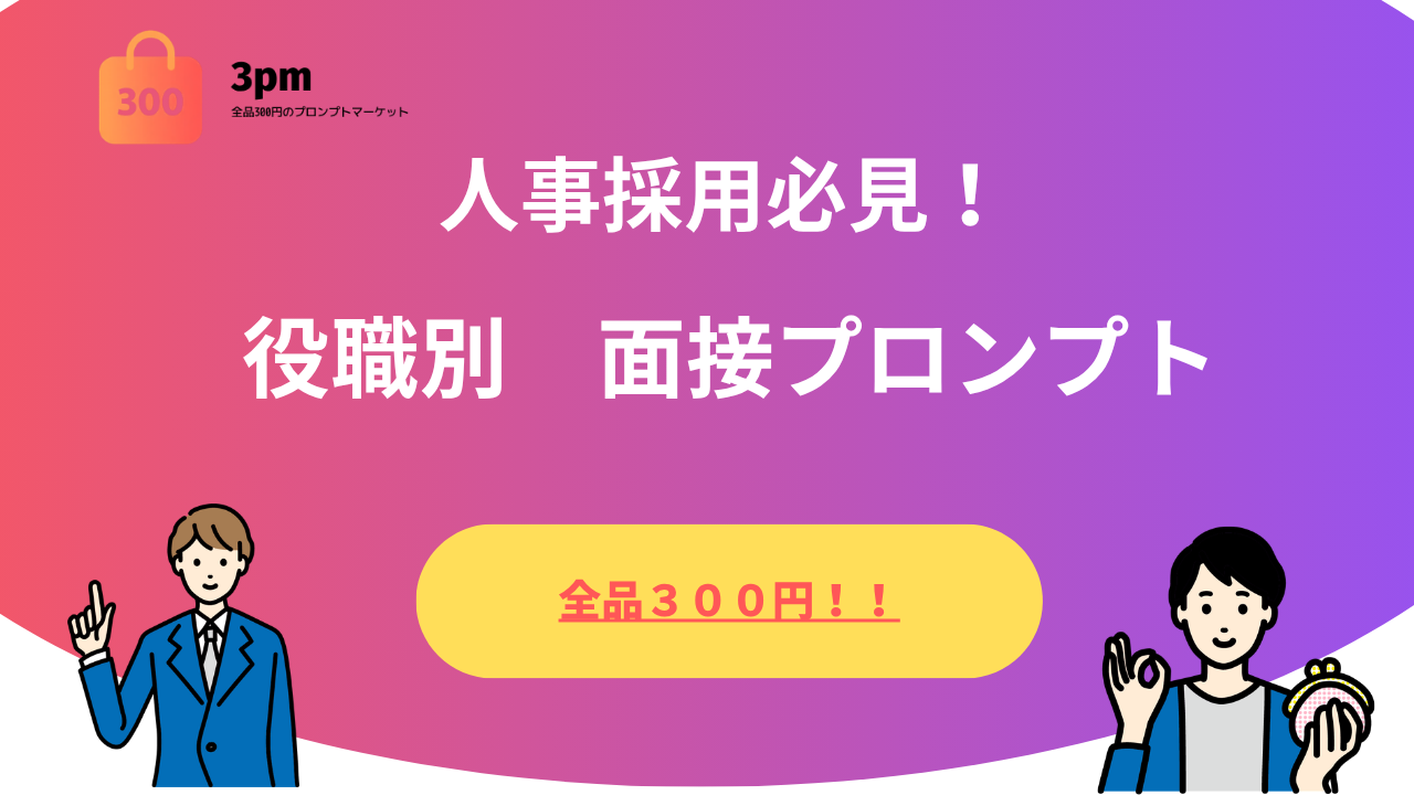 【人事担当者必携】役職・職種別の面接質問リストを30秒で自動生成するプロンプト|様々な分野の専門家が作るAIプロンプトマーケットプレイス「PromptWorks(プロンプトワークス)」